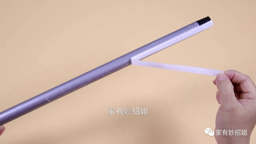 接下来,再给大家分享一下羽绒服毛领的改造。方法也很简单,我们先准备一根棍子,像平时我们家里使用的扫把、或拖把坏掉之后,这个棍子也不要扔了,我们就可以利用上它。只需要在棍子的两边分别粘上一长段的双面胶。