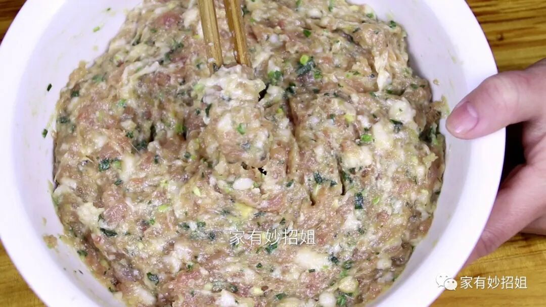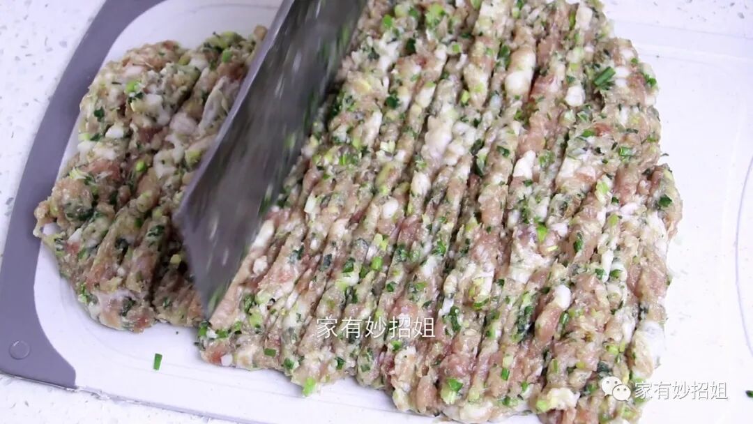 很多朋友剁肉馅喜欢用绞肉机来绞,但是我更喜欢自己剁出来的肉馅,用绞肉机绞出来的肉馅口感会比较柴,吃起来也没有那么Q弹!我们肉馅也尽量剁得碎一些。