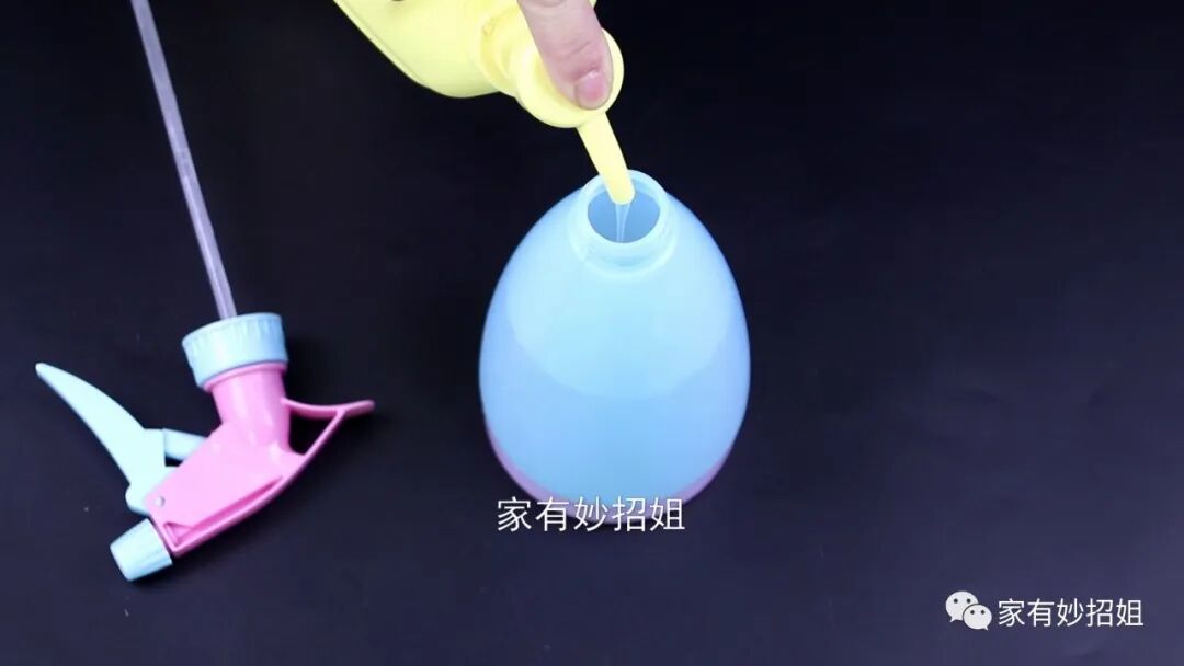 接下来,我们再将喷壶盖子盖紧,摇晃一下,将里面的溶液摇晃均匀,那么这样一个清洁玻璃的溶液就调制好了。