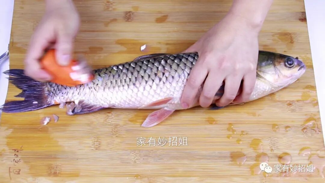 我们平时从市场上购买回来的鱼,商贩都只是将鱼鳞给刮掉,但在鱼身上还有一层粘液,很多人都忽视了。我们用手摸一下就可以感觉得到,鱼皮上都是黏黏的。这个粘液是非常腥的,想要将这个粘液处理掉,方法也很简单,我们只需要将鱼放在案板上,然后用菜刀在鱼身上刮一刮,这样就可以将粘液刮干净了。