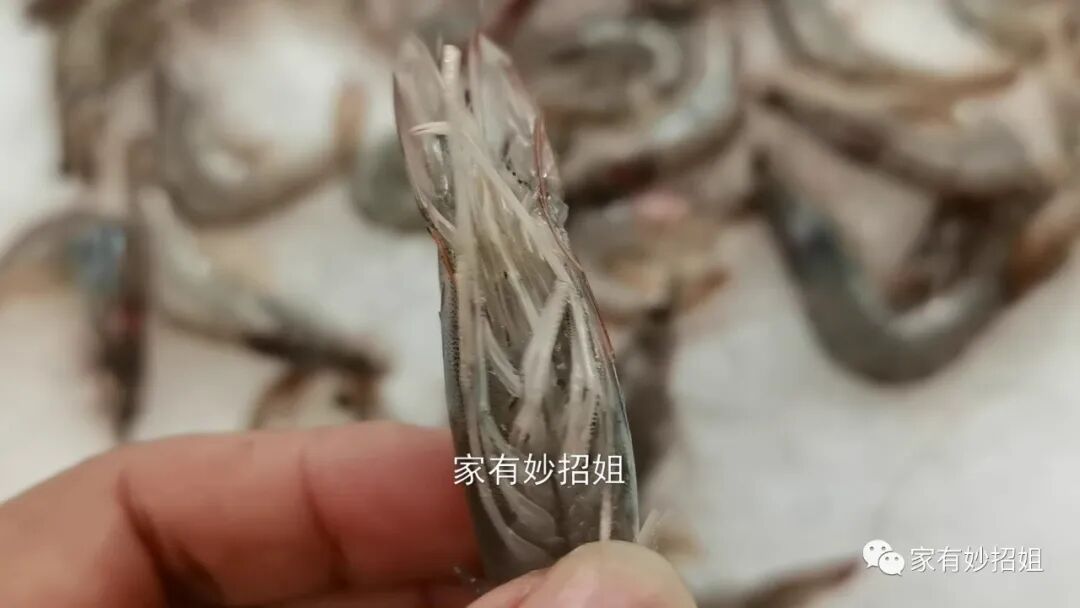 在挑选大虾的时候,我们还可以注意观察一下虾腿,我们将虾拿在手上,观察一下虾腿张开的情况。新鲜的大虾,它的虾腿是张开的、松散的,而虾腿如果是紧紧贴合在虾身上的,这种虾就是死了之后再拿去冰冻的,已经不那么新鲜了。
