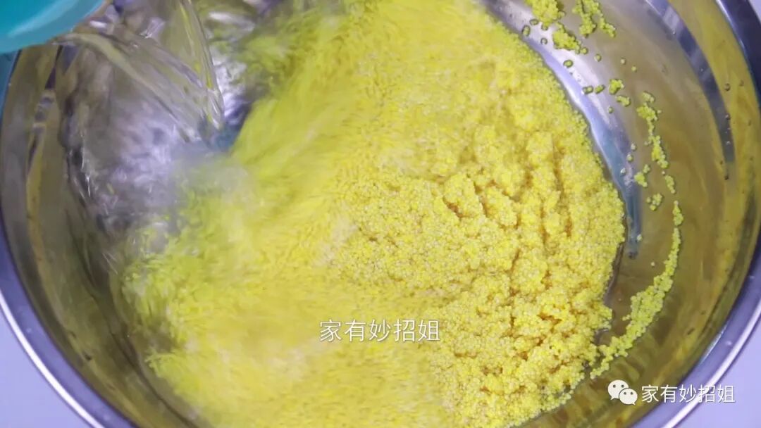 首先,我们在盆中准备适量的小米,然后将小米清洗一下。我们清洗小米的时候,不需要用力去搓洗,只需要简单的抓洗一下就可以了。因为小米的表面只是有一些灰尘而已,我们不需要一直清洗。如果用力搓洗的话,就会造成小米的营养流失,大概将小米清洗两遍就可以了。