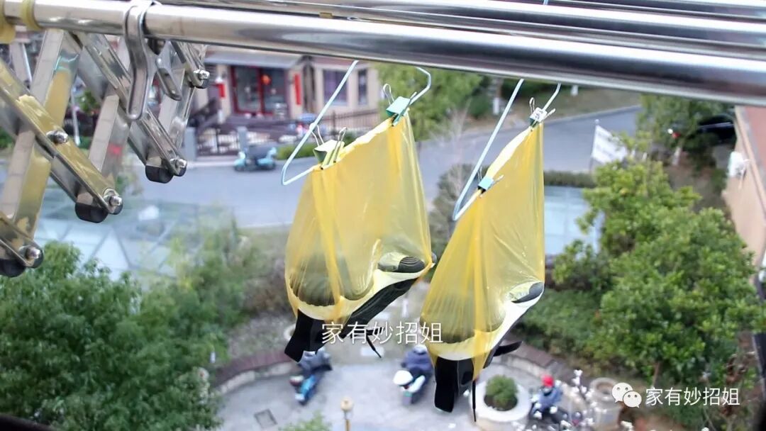 一只鞋子处理好,我们再按同样的方法将另一只鞋子也处理好。不管是大人还是小孩的鞋子我们都可以按这个方法晾晒,鞋子小点,我们也可以选择用小点的塑料袋,这个晾晒鞋子的方法简单又实用。
