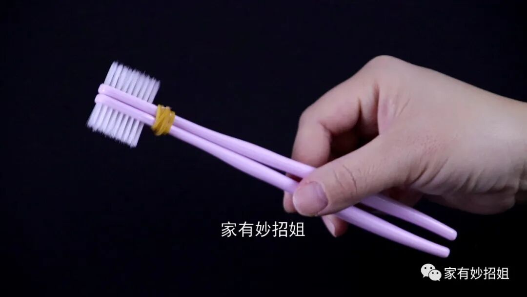 妙用四:清洁下水道。我们家里的洗水池、洗碗池都是有一个下水口的,这个下水口由于长时间的使用,在内壁上很容易附着污渍,甚至还有一些头发会卡在里面,这样就容易造成下水道的堵塞。其实我们可以拿上两把废旧的牙刷,把牙刷背靠背的用皮筋固定在一起。