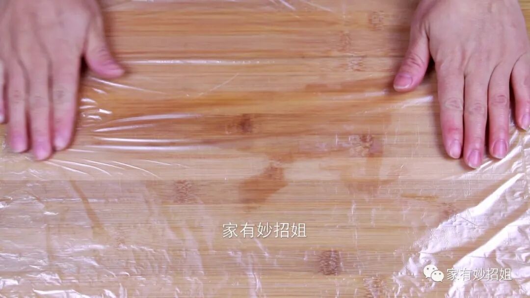 首先,我们将案板放在桌面上,然后在案板上垫上一层保鲜膜,这一步的目的是防止在刮鱼鳞的时候,鱼鳞弄得到处都是,处理起来非常的麻烦。我们垫了一块保鲜膜,再将鱼放在上面,这样刮下来的鱼鳞就会直接掉落在保鲜膜上,处理起来就简单多了。