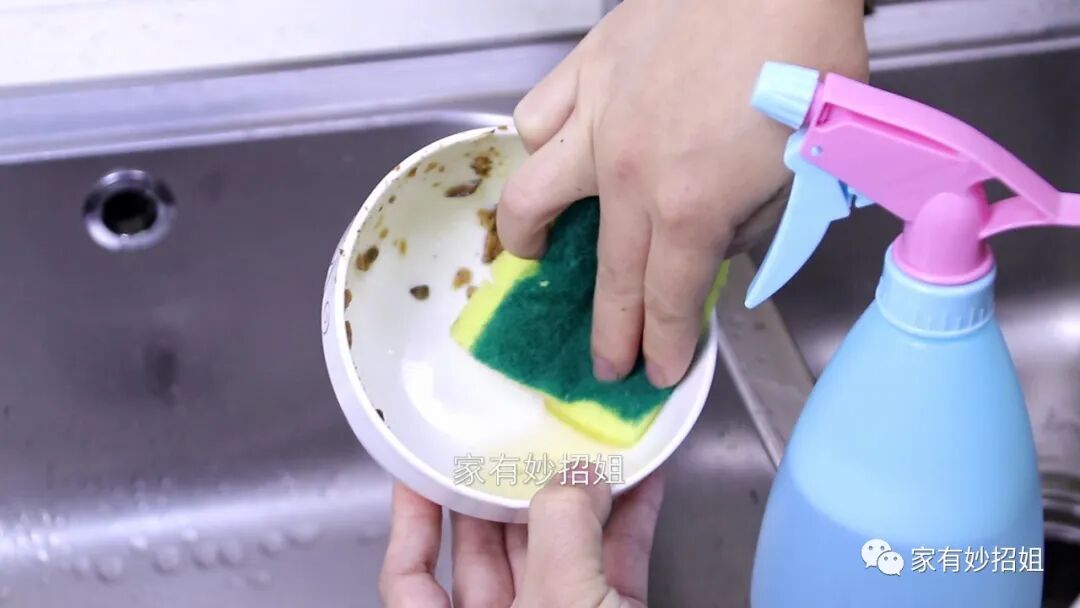 妙用一:清洁碗盘。我们每天都需要清洁碗盘,平时我们清洁碗盘都会用洗洁精来去除油污,其实我们也可以用苹果水来清洁,只需要再要清洁的碗盘里面喷上一些这个苹果水,然后再用抹布来擦拭,这个时候我们就可以发现,碗盘就被清洁干净了,上面一点油污都没有。