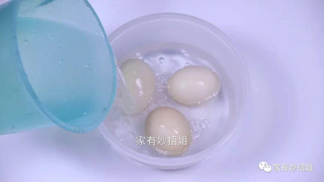 然后再往碗里倒入凉白开,不需要太多,能浸泡到大半个鸡蛋就可以了。