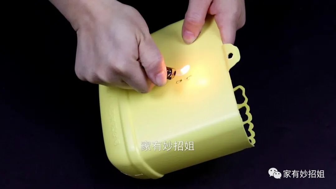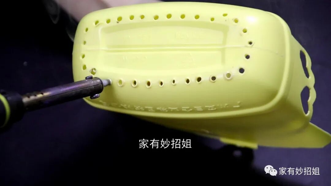 最后,我们在瓶子的底部均匀的戳上一些小孔,这些小孔就可以起到一个沥水的作用了。小孔全部戳好就改造完成了,来看看它有什么作用吧!