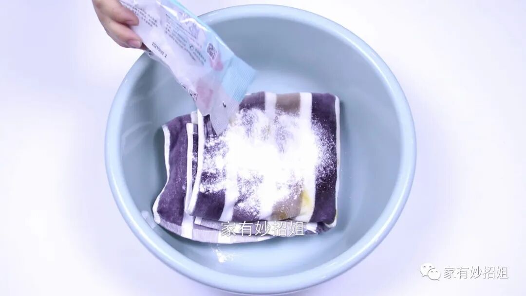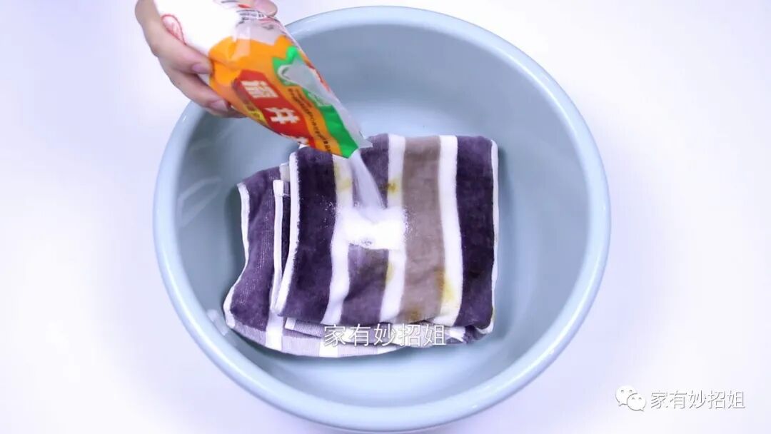 其实想要将毛巾彻底的清洁干净,方法也很简单,我们先将要清洗的毛巾放在盆中,再往毛巾上倒一点食盐,食盐具有杀菌消毒的作用,这样就可以将毛巾上面的一些螨虫、细菌之类的通通都消灭掉了。