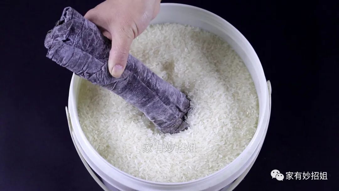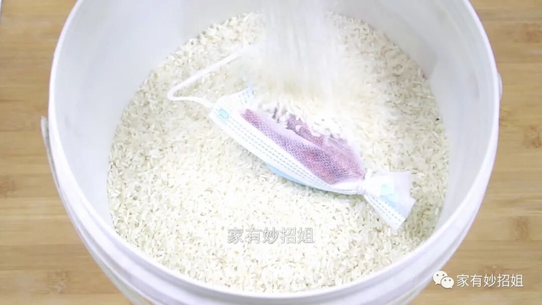 我们只需要把它埋进大米里就可以,要是大米比较多的话,我们也可以多制作上几个,在大米的各个角落都放上一包,这样就能有效的防止大米生虫了。