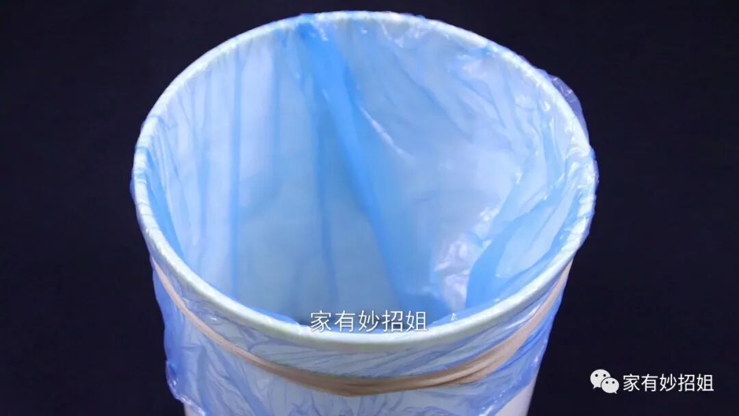不仅如此,剩下没用完的垃圾袋,我们也可以放在袜口的位置收纳,下次要套垃圾袋的时候,就不用到处找了,拿取的时候都非常的方便。