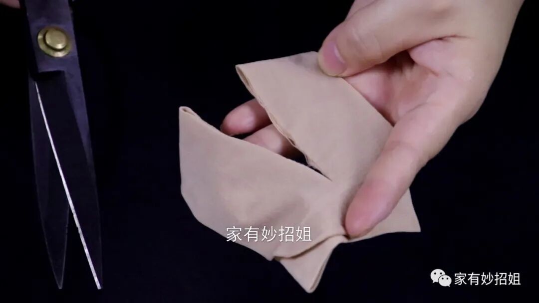 妙用二:固定垃圾袋。家里的垃圾桶套上垃圾袋后,每次一扔重物,垃圾袋就会往下滑都归拢到了中间,下次要扔垃圾,还要将垃圾袋重新套过。遇到这样的问题,我们也可以利用上一只旧丝袜,只需要把丝袜从中间折叠起来。然后再用剪刀在丝袜的中间剪上一刀,注意丝袜的两头不要剪断了。