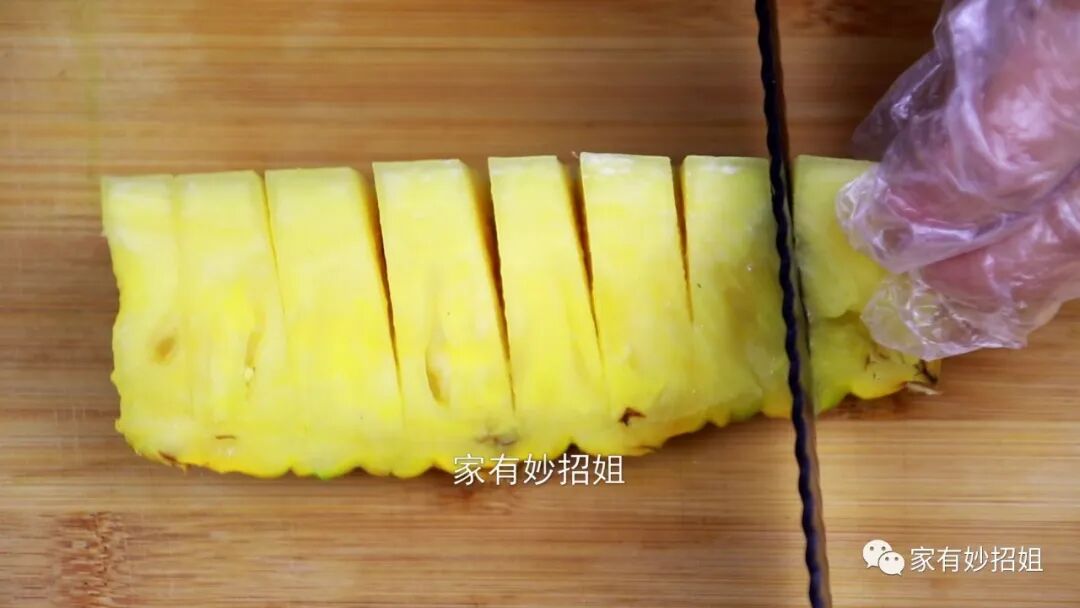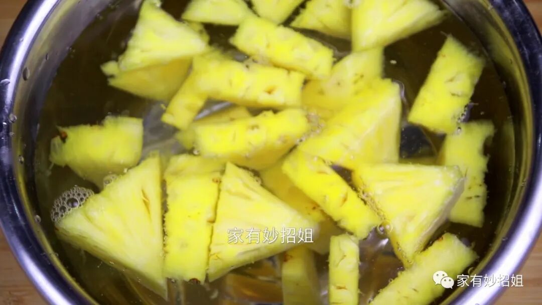 接下来再将切好的菠萝,直接倒在盐水中浸泡一下。淡盐水可以抑制菠萝酶对口腔黏膜和嘴唇的刺激。经过淡盐水的浸泡之后,这样的菠萝吃起来不仅不会使我们的嘴巴不舒服,而且还会让菠萝变得更加香甜好吃。如果今天的文章对您有帮助,那就点一个关注,点一个赞,感谢您的支持。