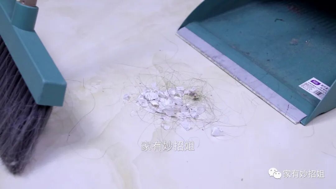 平常扫地时经常会扫到很多的头发,而且扫着扫着,扫把上会沾有很多的头发,这些头发根本扫都扫不起来。这个时候我们就可以用到鞋子里面的这团纸,把它撕碎,然后直接扔在有头发的地上。我们再来扫的时候,头发就轻而易举的可以扫起来。这是因为这个纸在我们扫的过程中会产生静电,静电的话就会吸附头发。这样我们在扫的时候,头发就会粘在纸上,头发就会连同纸屑一同扫起来了。