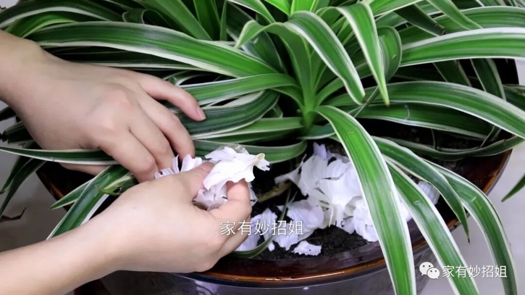 妙用一:养花。大蒜皮中含有丰富的钾元素和磷元素,而这两种元素又正是花草所需要的养分,我们就可以用它来种植一些花草。平常大蒜皮剥下来后不要扔了,我们只需要将蒜皮直接放在盆栽的土壤上,这样不仅可以使家里的花草长得更加茂盛,而且蒜皮的气味还是蚊虫所不喜爱的,它还可以起到一个预防花草生虫和驱赶蚊虫的作用。蒜皮放上几天之后,家里就会攒有新的蒜皮了,我们就可以将之前的蒜皮拿出来,再放入新的蒜皮。大家也可以将蒜皮和土壤混合在一起,这样不但能给花草提供养分,还能使土壤不板结。