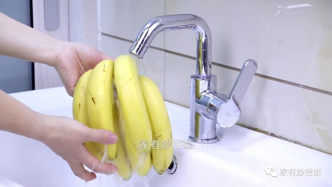 如果想保存时间久一点,大家把买回家的香蕉用流动水冲洗一下,这样是为了洗掉香蕉表面的催熟剂。