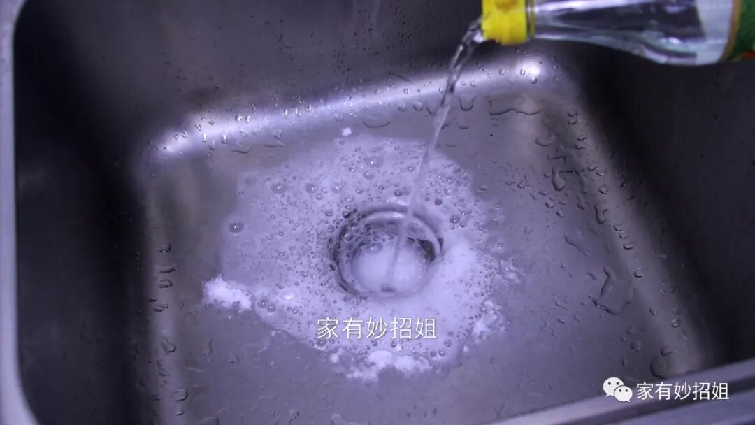 再倒入一点白醋,当白醋倒下去时,就会迅速的和小苏打发生反应,产生大量的气泡。白醋的作用不仅可以软化污渍,而且它还能去除下水道里的异味。接着我们再往里面挤入一点洗洁精,洗洁精可以很好的清洁油污。