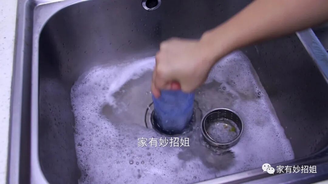 其实这个原理和我们用皮搋子疏通马桶是一样的,就是利用瓶子在来回不停抽动的过程中,增加了下水道里面的压强,利用压强将下水道里的异物给冲掉,我们就这样一直来回不停的抽动。多抽动几下就可以发现,洗碗池的下水道慢慢的就被疏通了。