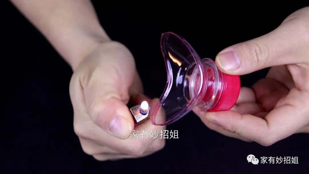 标记好,我们再用剪刀沿着刚刚画好的标记线将它裁剪开来,这样就变成了一个小漏斗的形状。然后我们再准备一个打火机,烧一下边缘,让边缘没有那么锋利,这样就不会割手了。