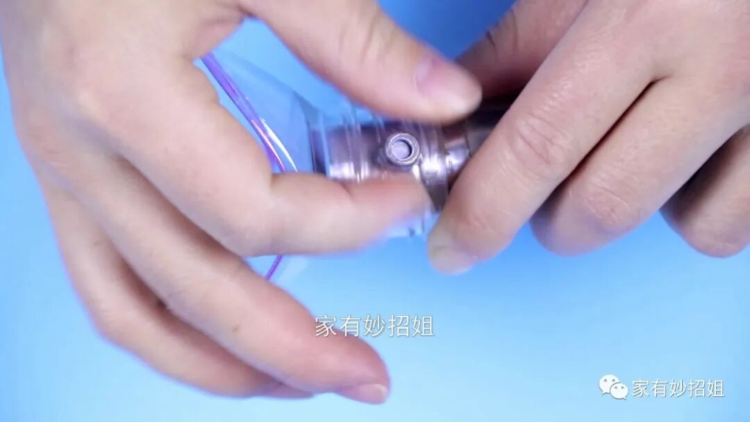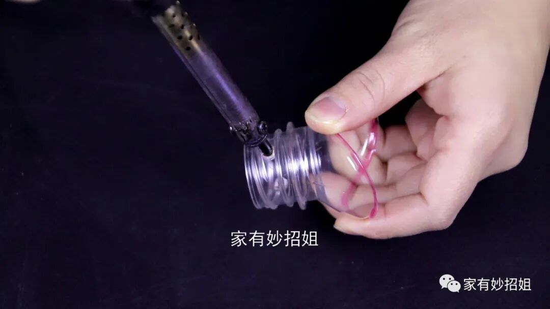 烫好后,我们将瓶盖拧开不要,接着用电烙铁在塑料瓶瓶口螺旋的位置,戳上两个对立的小孔。这个孔也不需要戳的太大,可以拧进一个螺丝就行。