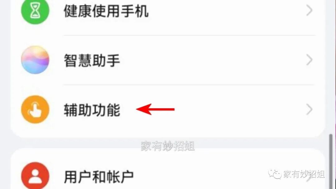 小孔全部清理好后,我们在打开手机的设置,找到“辅助功能”。