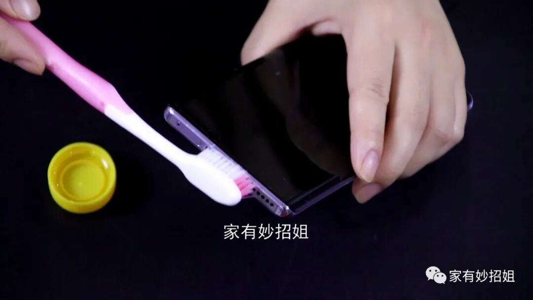 方法也很简单,我们可以倒点酒精,再拿一把软毛的牙刷,蘸取酒精来擦拭这些小孔,因为牙刷的刷毛非常的小,就可以很好的清理到小孔里面了,而且酒精易挥发,我们也不用担心会将手机打湿。