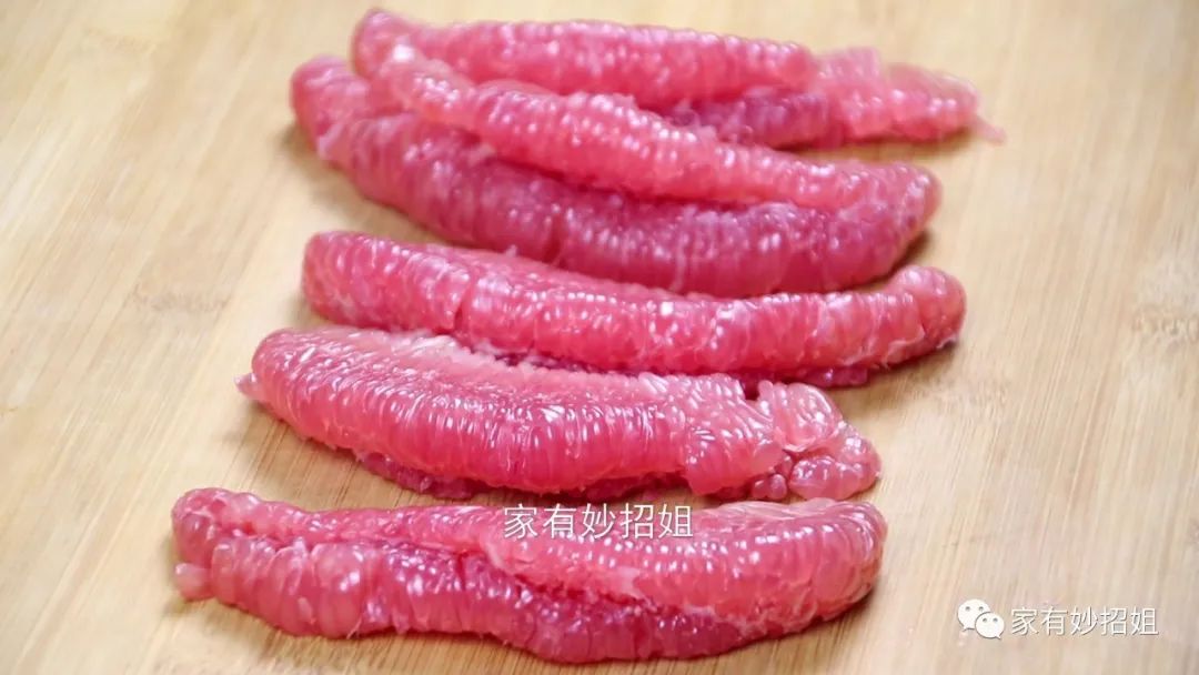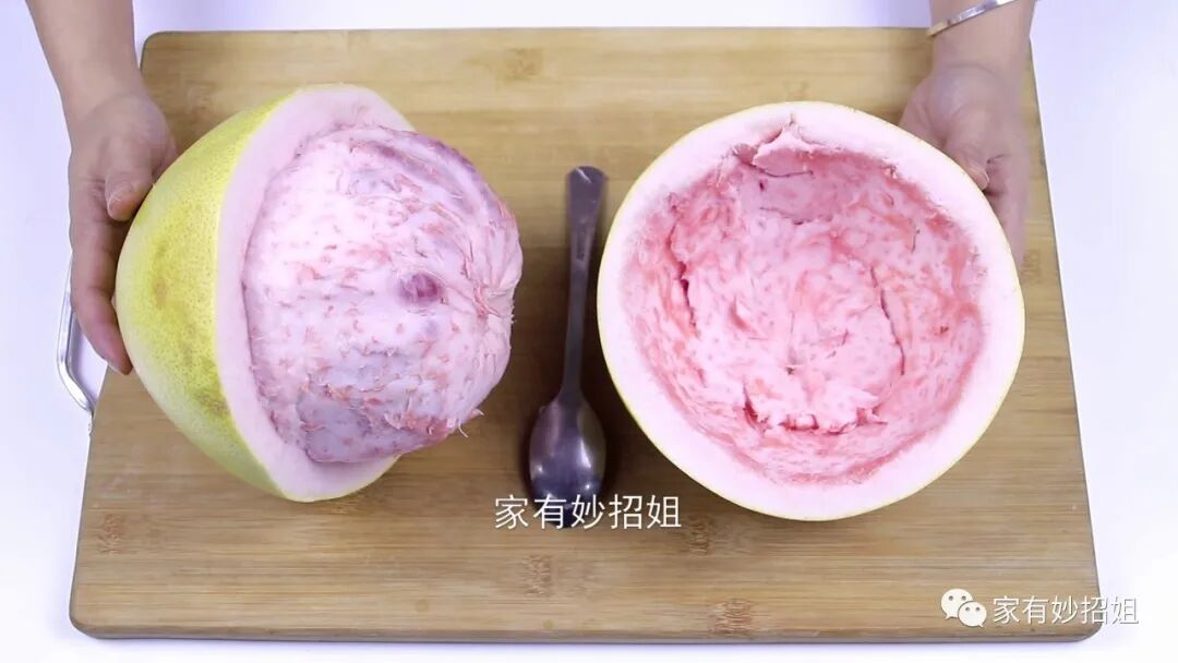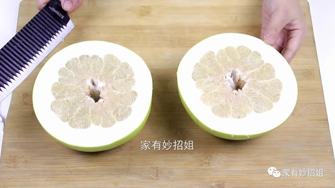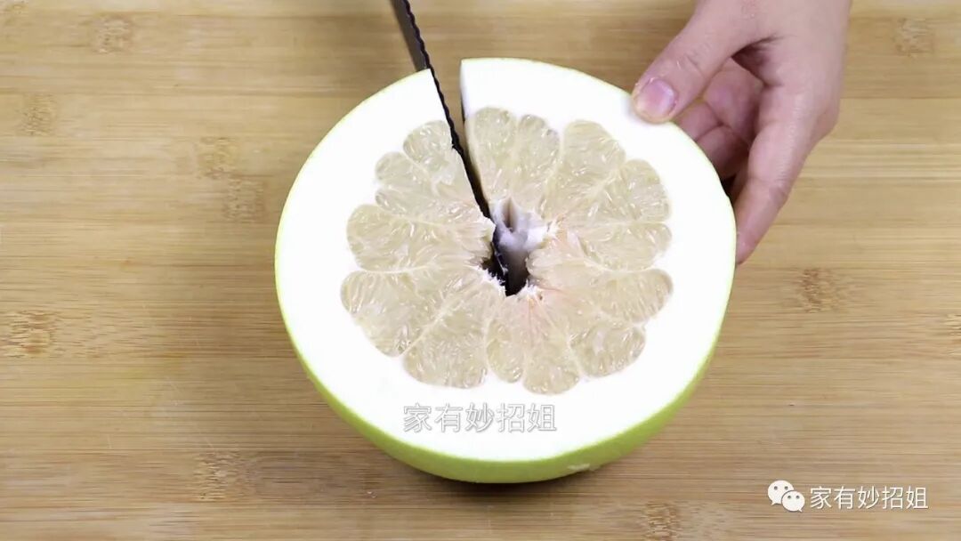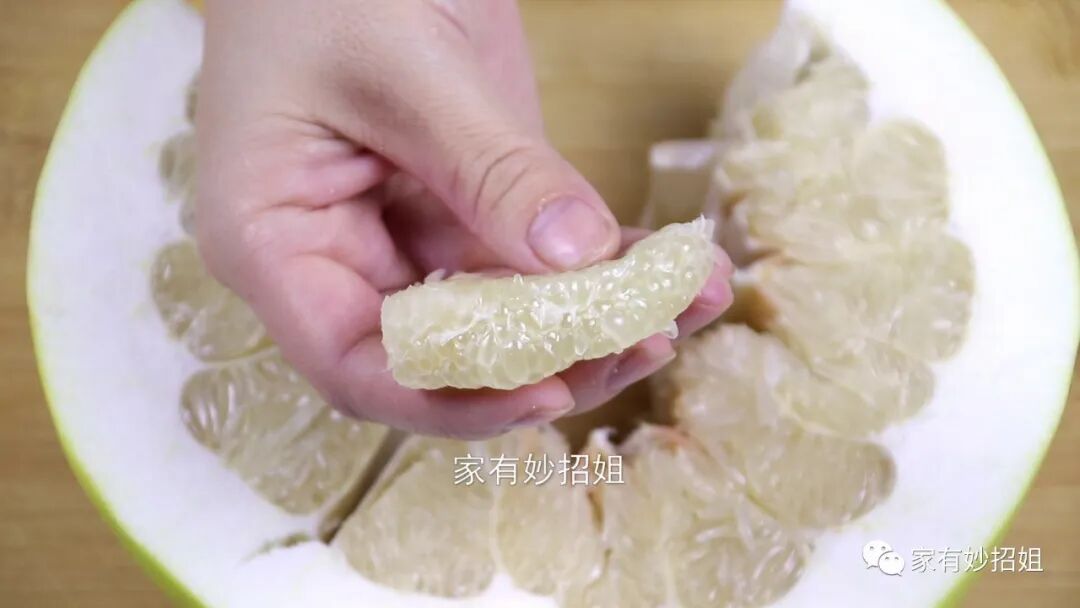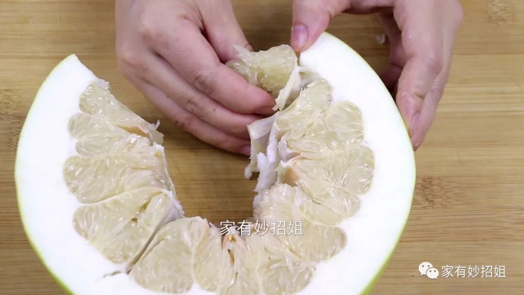 用这个方法剥出来的柚子肉非常完整,而且上面一点筋膜都没有。