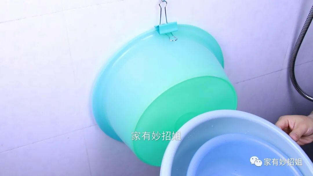 在我们家里都会有好几个塑料盆,一般情况下,我们都是将它直接放在卫生间的地面上,这样不仅会占地方,而且平放在地面上,还会在盆里容易有积水,使盆子变脏。其实收纳塑料盆,我们就可以利用上燕尾夹。方法很简单,我们先在最大的塑料盆边夹上一个大号燕尾夹,然后再墙壁上粘一个挂钩。