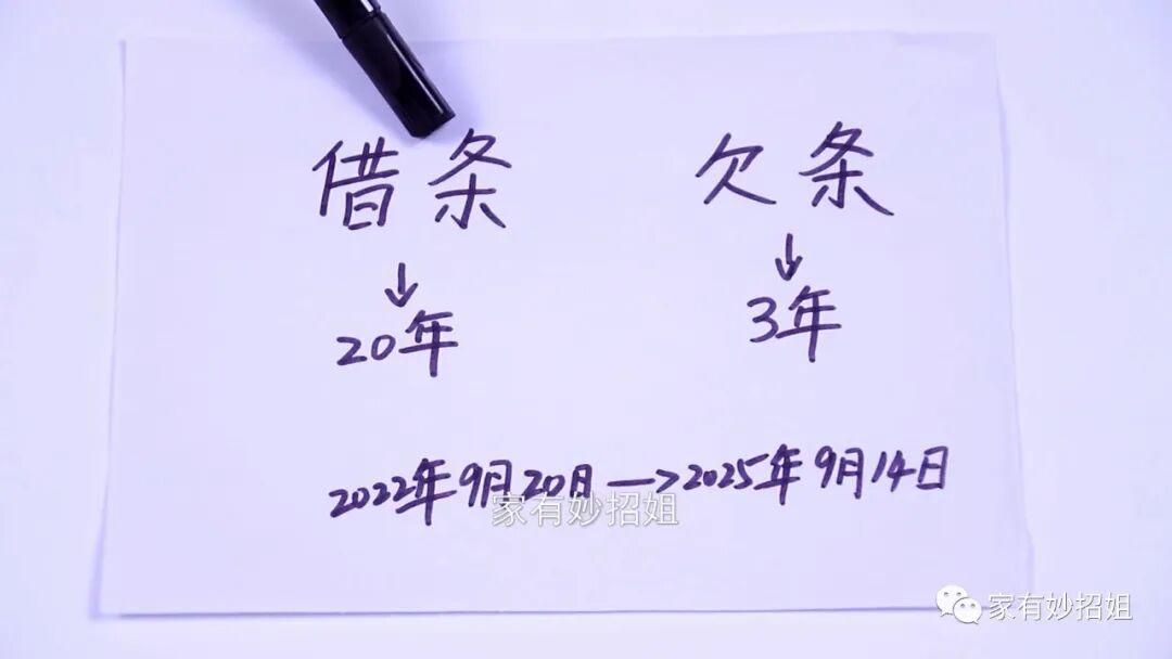 不仅如此,借条和欠条它的有效期是不一样的,在都没有写明还款时间的情况下,借条的诉讼有效期有20年,而欠条就只有3年,超过有效诉讼期,我们就很难通过打官司要回钱了。