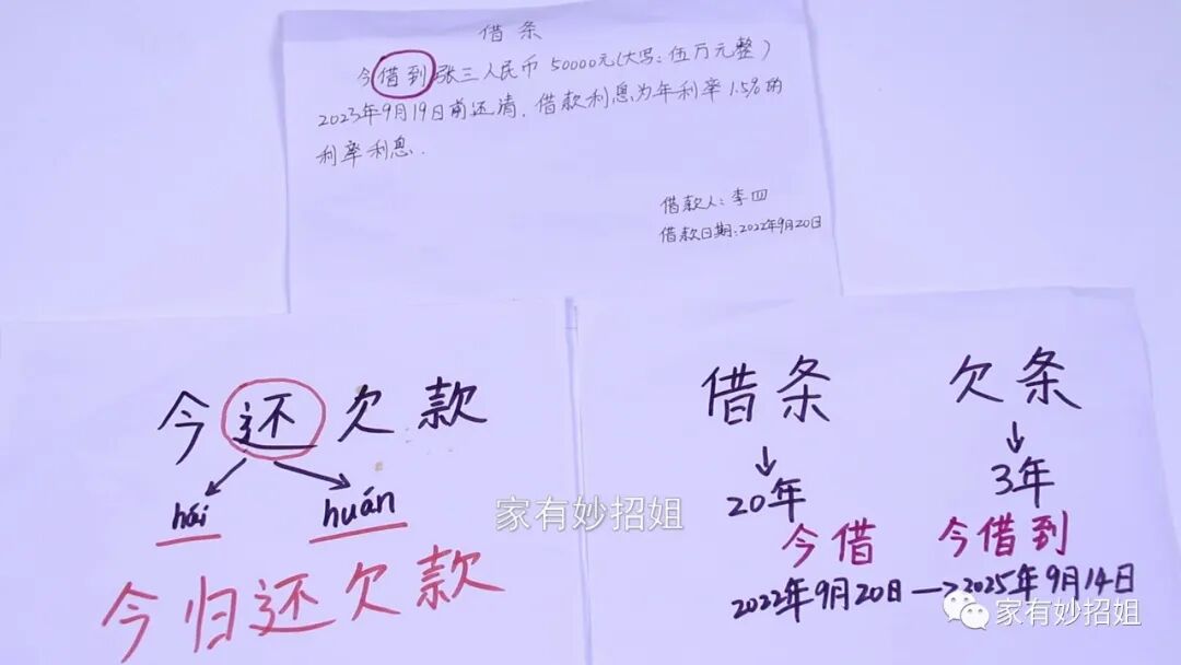 “还”字,相信大家都知道,它也是我们写借条时经常会用到的一个字,“还”字是一个多音字,可以读作(huan)也可以读作还(hai),不同读音当然意思也就不同了。比如借条中写着:“今还欠款10万元”,如果读还(huan),则表示今天还huan给了别人10万元的欠款;要是读还hai的话,它的意思又变了,是你还hai欠对方10万元的欠款。