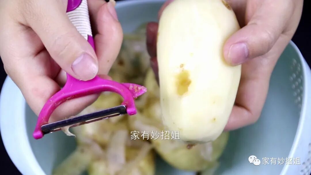 就拿土豆来说吧,土豆的表面会有很多小的凹槽,通常我们削完皮后,能看到这些凹槽里面还有很多的皮没有削到。如果继续用削皮刀来将凹槽削平的话,就会浪费很多果肉。要是用刀来挖,不仅麻烦,而且刀比较锋利,也比较大,一不小心可能就会伤到手。那么这个时候,我们就可以利用上削皮刀的这个“小耳朵”。