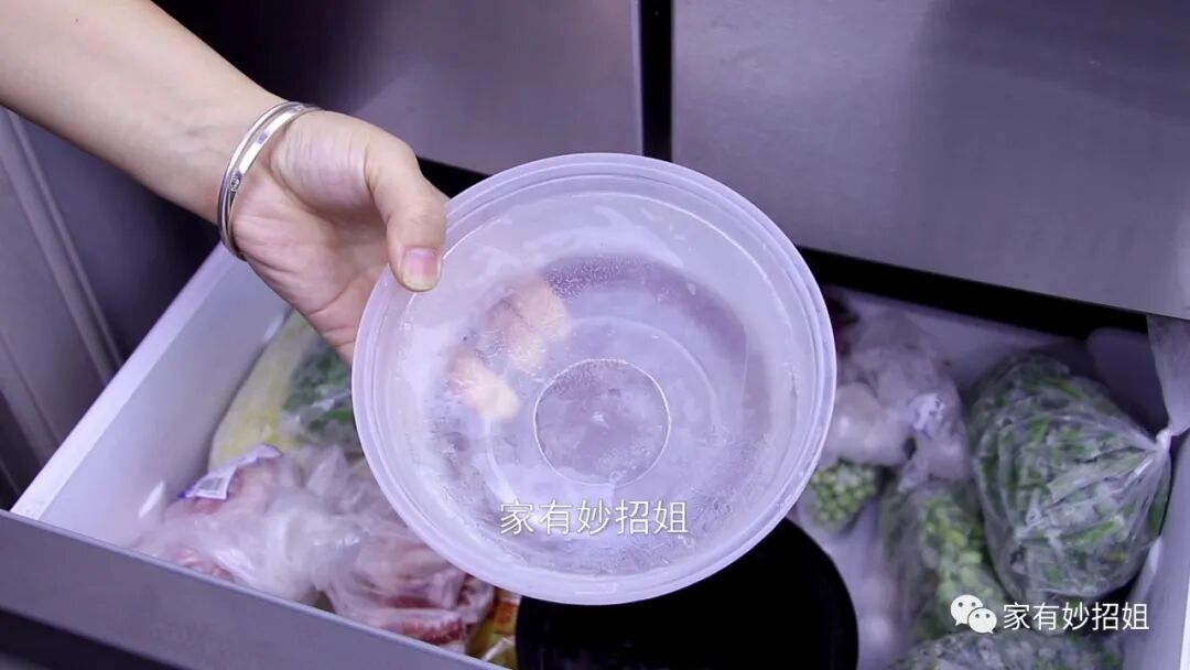 其实我们要是想减少冰箱耗电量的话,就可以用到我们的打包盒。我们先将打包盒清洗干净,然后在里面装上半碗清水。接着再把它放进冰箱的冷冻室里面,让它冻上一晚。