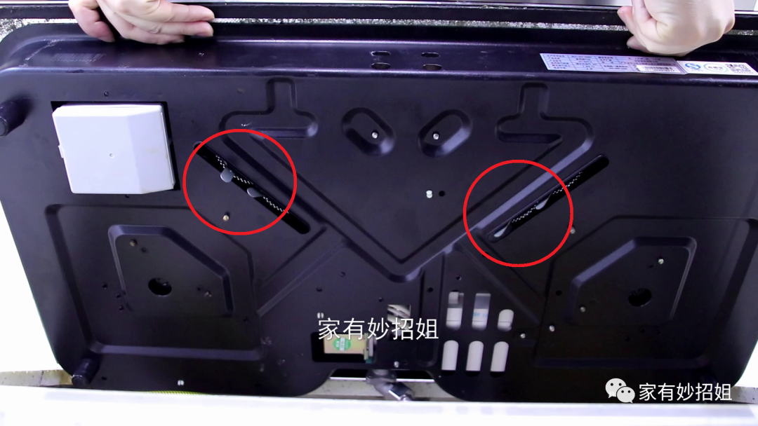 方法也很简单,我们先将燃气灶抬起来,注意观察燃气灶的底部,可以发现,在燃气灶的底部两边各有2个金属玻片,这个金属玻片就是燃气灶的风门了。左边的拨片就是调节左边灶台的,右边的拨片就是调节右边灶台的。我们只需要通过调节这4个拨片,然后观察火焰的颜色,直到将火焰调成正常的蓝色火焰就可以了。