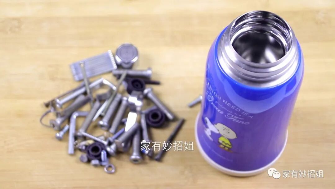 妙用四:收纳工具。家里的一些螺丝刀、铁钉之类的小物件,一般的时候都用不到它,可等你要用的时候,就找不到了,就算明明记得家里有,找起来也很费劲。而且家里有小孩的,这些小物件,如果被孩子拿去玩,也是非常危险的。遇到这个问题,我们就可以利用上这个旧的保温杯,将这些小物件都集中收纳在保温杯里面,然后放在家里高一点的地方,这样小孩就玩不到了,而且我们要用的时候也不需要到处找。