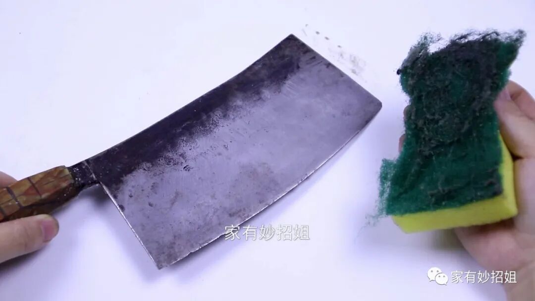 经过反复的擦拭,我们就可以发现,菜刀上面的锈迹已经被擦拭的干干净净的了,而且菜刀也被清洁的非常光亮。