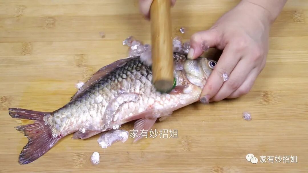 我们在处理鱼的时候,只需要将鱼放在案板上,再抓住擀面杖的另一端。用擀面杖上的啤酒瓶盖来刮鱼鳞,从鱼的尾部开始往上推,轻轻一推我们就可以发现,鱼鳞就被刮了下来,非常的简单,而且鱼鳞还不会乱飞,这样来刮鱼鳞也不用担心会伤到手。鱼鳞刮好,我们将它清洗干净放好,下次还可以继续使用。这个用啤酒瓶盖制作的刮鱼鳞神器非常的好用。