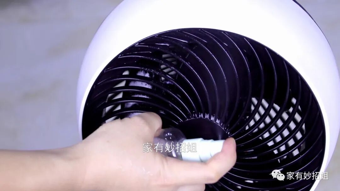 我们的电风扇长时间的没有清洁,扇叶和一些缝隙里面,就满是灰尘,要是不清洁干净的话,吹出来的风就都是灰尘。这个时候,我们只需要将制作好的溶液均匀的喷洒在风扇的扇叶上面,前面后面都要喷到。不过要注意的是,我们在喷溶液的时候,要避开扇叶中间的电机,电机一旦进了水,就容易损坏。