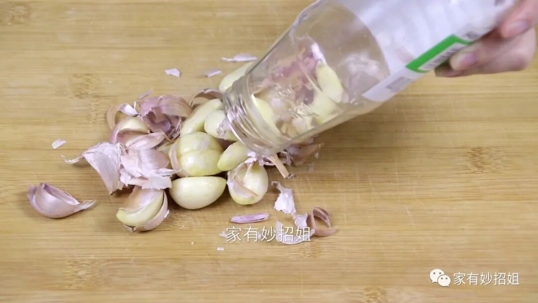 大蒜是我们炒菜时经常会使用到的调味品,在使用之前,我们就需要把大蒜皮剥掉。其实剥大蒜我们同样可以利用上玻璃瓶,只需要把大蒜掰散,然后放到瓶中,接着再将瓶盖盖紧。盖紧后,我们抓住瓶身不断的摇晃,在大蒜和玻璃瓶内壁发生碰撞的过程中,大蒜皮就会自动松落。