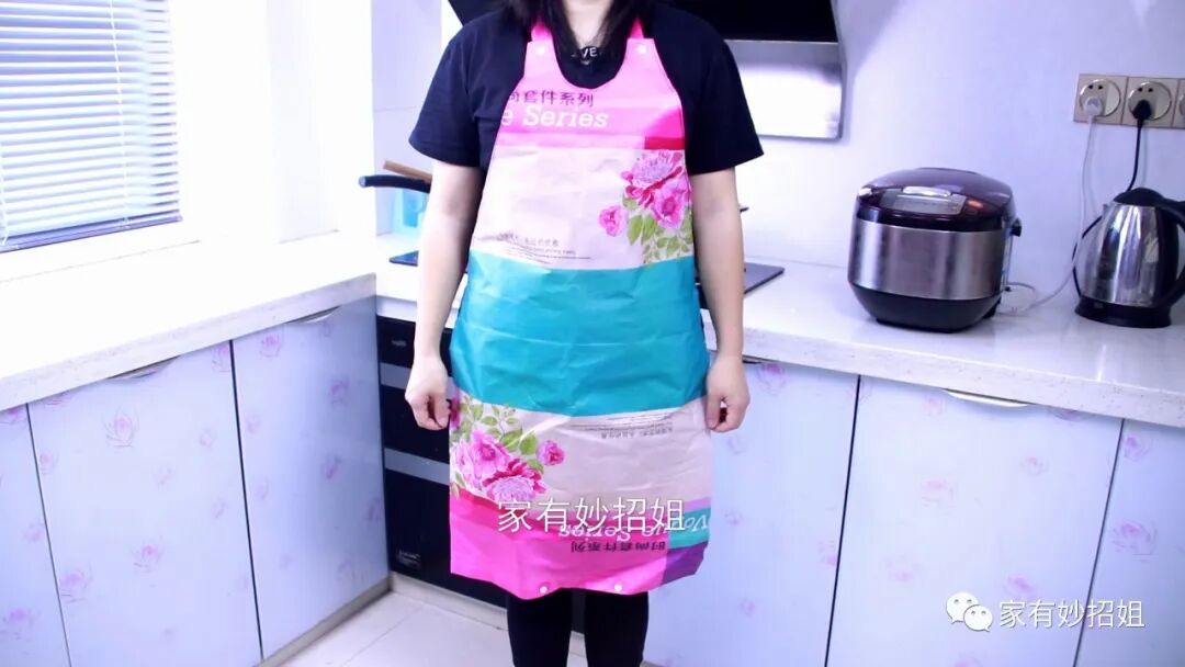 我们戴上就可以看到,和购买回来的围裙一样,非常好用。而且手提袋的面料还是防水的,我们系上它来做饭,就不会弄脏我们的衣服了。而且就算把它弄脏了,也不需要清洗,可以直接将它丢弃,然后重新做一个,也花不了多少时间。这个用手提袋改造围裙的方法,既简单又好用,觉得不错的,你也可以试试。如果今天的文章对您有帮助,那就点一个关注,点一个赞,感谢您的支持。