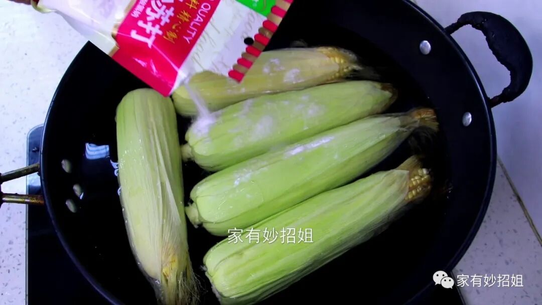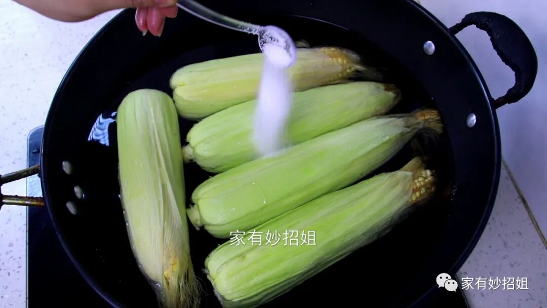 只需要往锅里倒入一小勺的食盐,俗话说,“要想甜,加点盐”,食盐就可以很好的将玉米里的甜味激发出来。