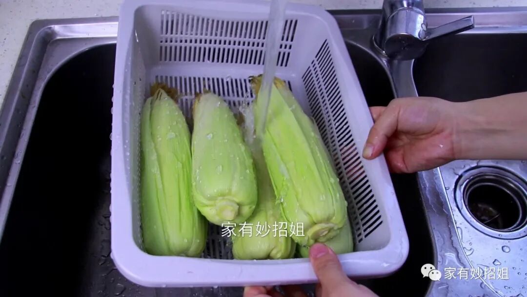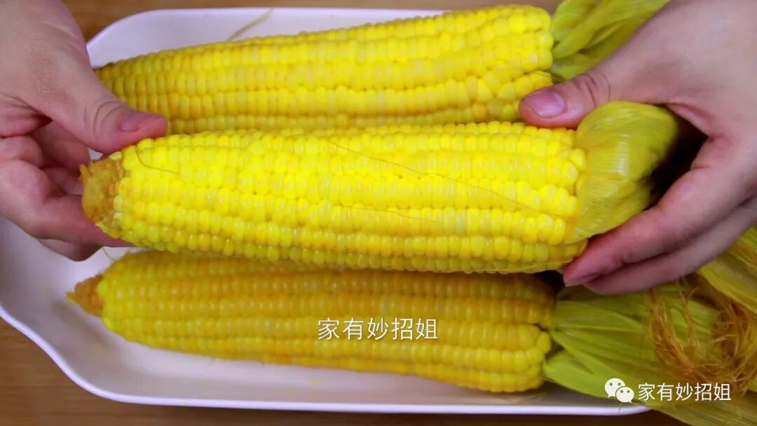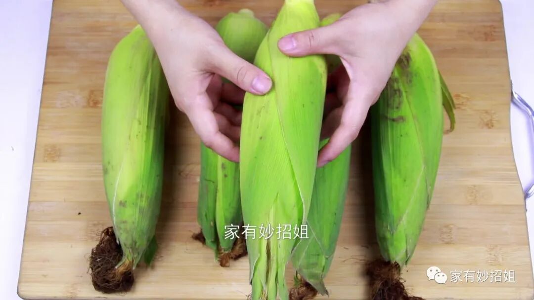 我们给他预留了一两层玉米皮,将它包裹在里面,这样它的甜味和营养就不容易流失了。
