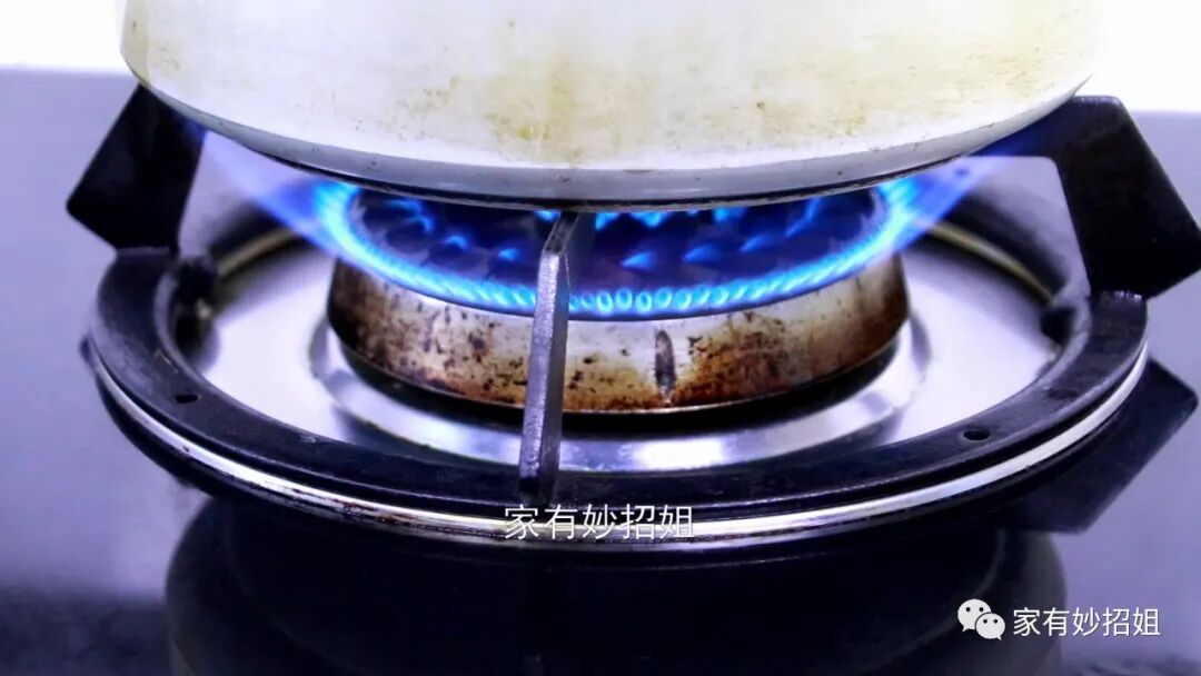 静置的时间差不多了,我们再把锅放到燃气灶上,开小火把白醋加热到沸腾。白醋的沸点是非常低的,只需要加热一会,醋就被烧开了。在烧的过程中,我们也可以把锅再次晃动一下,这样锅壁上的黑垢也能被白醋软化。