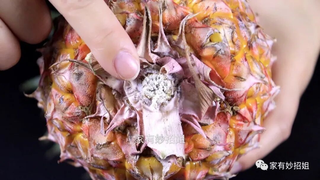 挑选菠萝时,我们还要注意看一下菠萝底部的果蒂,这个果蒂可是区分菠萝新不新鲜的关键部位。新鲜优质的菠萝,它的果蒂看上去新鲜并且微微干燥,但是没有发霉发黑的现象,这种菠萝就是刚采摘不久,刚刚运输到的,它的汁水充足,口味更好。相反,要是果蒂已经发霉发黑的话,那就说明里面的养分已经被消耗的差不多了,水分也蒸发掉了,这样的菠萝它里面的果肉都是绵软的,而且里面果肉还可能已经发黑,我们就不要购买了。如果今天的文章对您有帮助,那就点一个关注,点一个赞,感谢您的支持。