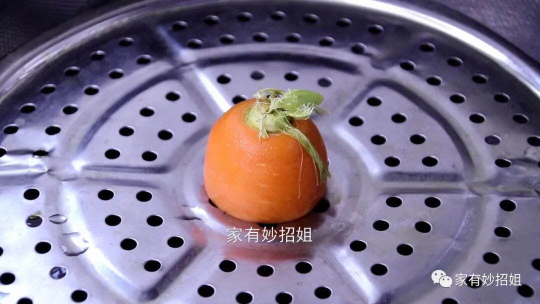 这个小物品就是胡萝卜头了,胡萝卜是我们餐桌上常见的一种食材,它含有丰富的维生素C,常吃胡萝卜,对我们的身体也有一定的好处。但我们每次在处理胡萝卜的时候,就会剩下一个胡萝卜头,这个胡萝卜头,相信很多人都是直接丢在了垃圾桶,其实,我们只需要将胡萝卜头简单处理一下,就可以用来清洁油烟机。方法也很简单,首先我们准备一个胡萝卜头,然后在锅中烧半锅开水,水开后,再把胡萝卜头放在蒸屉上,用开水蒸一下。蒸的时间也不需要太久,大概两三分钟的样子,把胡萝卜头蒸热就可以了。蒸的时间太长,就将胡萝卜头蒸熟了,胡萝卜一旦蒸熟后就会变软,这样就不好用来清洁。
