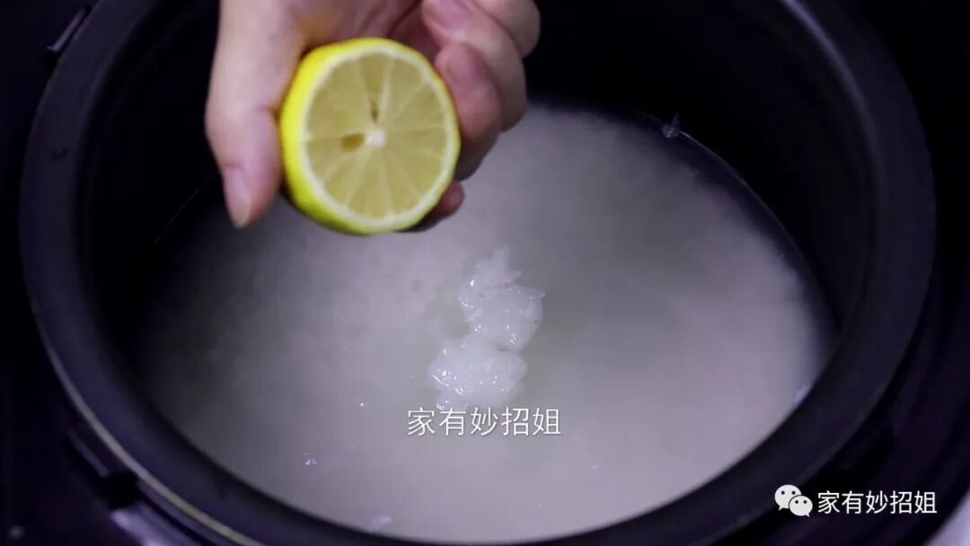接着,我们再往大米里面倒入一小勺的白醋。很多朋友就会想加入了白醋,那这样煮成的米饭不就是酸的吗?其实并不会,加入白醋不仅煮出来的米饭不会酸,相反煮出来的米饭还会非常的松软香甜。要是家里有柠檬的,也可以挤上几滴柠檬来代替白醋。