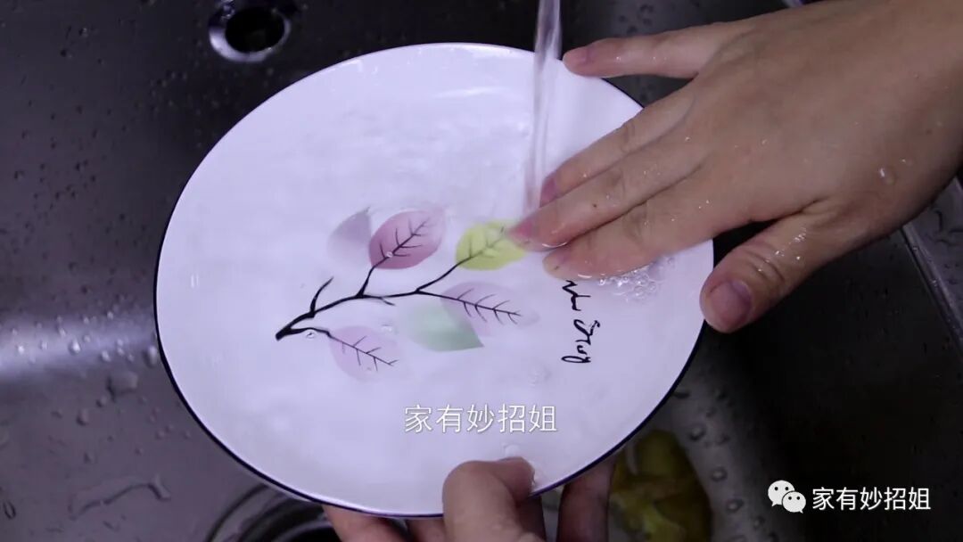 用土豆擦洗好后,我们再用清水冲一下,碗盘就清洗的干干净净的了。