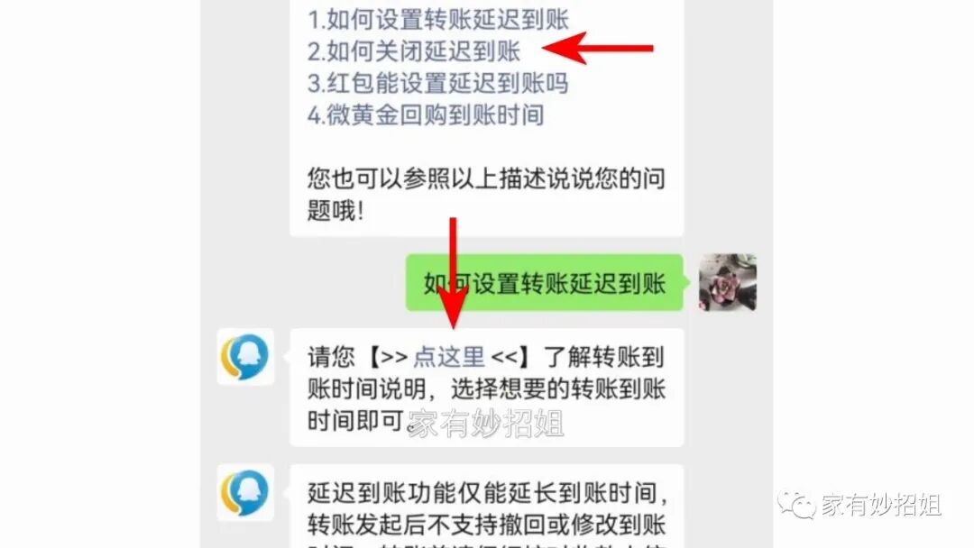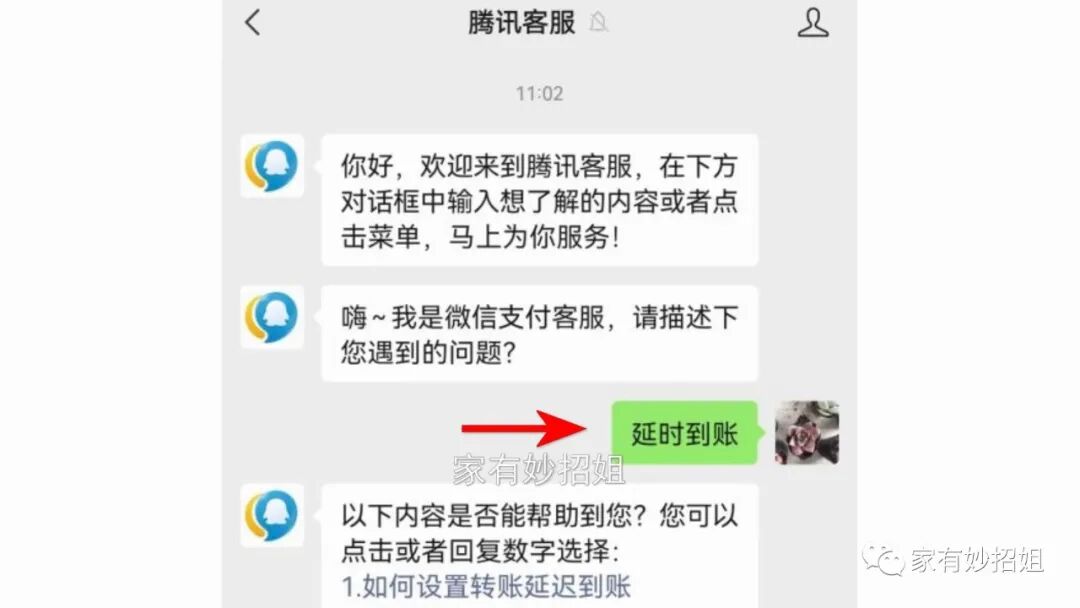 这时就会弹出一个对话框,我们选择第2个问题【如何设置转账延迟到账】。