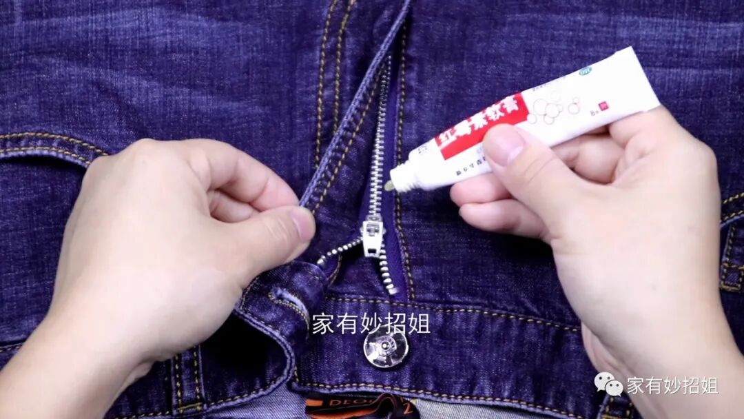 在我们的一些衣服、裤子、包包上都有拉链的设计,但这个拉链使用的时间长了,就容易出现卡顿的情况,尤其是牛仔裤上面的铁制拉链,经常都会出现卡顿的问题,拉链一旦卡住了,就非常的尴尬了,而且还需要我们换新的拉链。遇到这样的问题,解决的方法也很简单,我们不需要更换拉链,利用上一点红霉素软膏就可以了。我们只需要在拉链卡顿的地方挤一点红霉素软膏,然后涂抹在拉链的链齿上,接着我们再慢慢的把拉链拉合一下,可以发现,拉链又重新变得顺畅了,效果非常不错。这是因为红霉素软膏,里面还有凡士林的成分,纯天然的润滑剂,可以有效地润滑拉链,还可以防止拉链生锈。