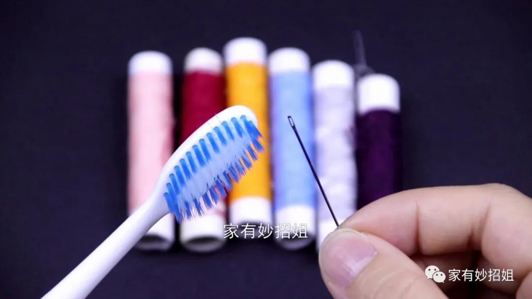 我们每天刷牙的牙刷也可以用来穿针引线,只需要拿上一支干净的牙刷,把牙刷放在桌面上,刷毛朝上。然后再把线拉直平放在刷毛的表面,接着我们再用针眼对准刷毛上的线,慢慢的往下压,这样线就被轻松的穿过针眼了。这是因为刷毛比较细小,可能一个针眼里都可以穿入好多根的刷毛,我们在按压的过程中,刷毛就可以起到一个支撑的作用,能把刷毛上的线带入针孔中,这样线就轻松穿好了,方法简单又实用。如果今天的文章对您有帮助,那就点一个关注,点一个赞,感谢您的支持。