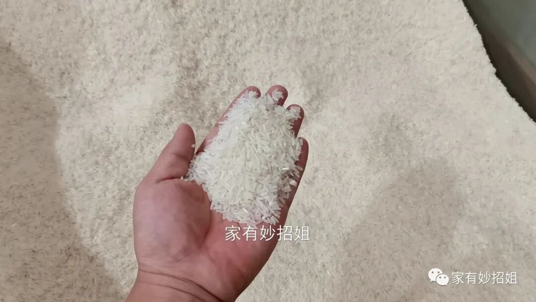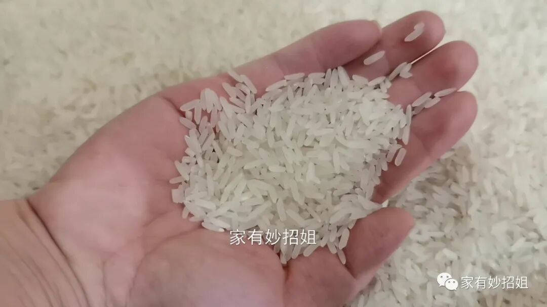 我们还可以拿起一粒大米用手指掰一下,看一下能不能将它掰断。新鲜的大米都会比较坚硬,因为新鲜的大米中水量少,蛋白质含量比较高,一般我们去掰的时候不容易掰断。那如果是陈米的话,因为放的时间比较久,里面的水分就会比较多,通常我们一掰就能将它掰成两段。